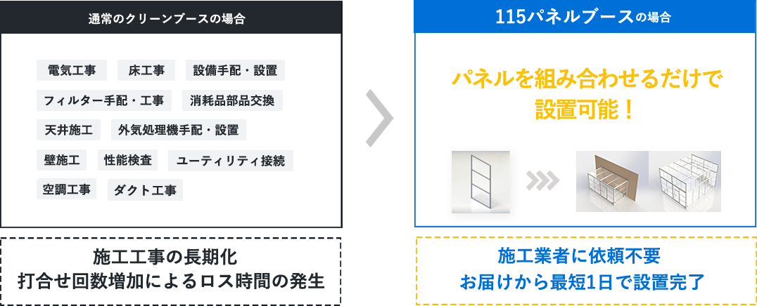 115パネルブースが届き次第、すぐにクリーン環境が手に入ります。