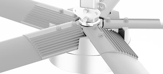 特許取得の革新的一体構造、高強度アルミニウム合金により軽量化を実現。他の製品と比べ60%近くの重量軽減を可能にしています。その軽さは軽快な稼働、省エネ、施設の負荷軽減、安全性の向上と多くのメリットを生み出し、SD-FANの大きな特徴となっています。