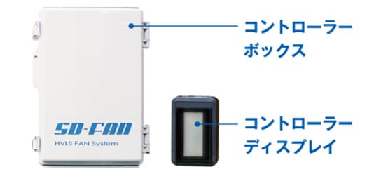制御のSD-FANの心臓部であるコントローラーは、装置メーカーとしての責任から国産部品を使用し自社設計・開発しました。長く安心して使っていただくため、業界最長クラスの10年保証で提供しています。わかりやすい小型タッチパネル操作で、ファンの正逆回転切り替えや風量の5段階調整が可能です。